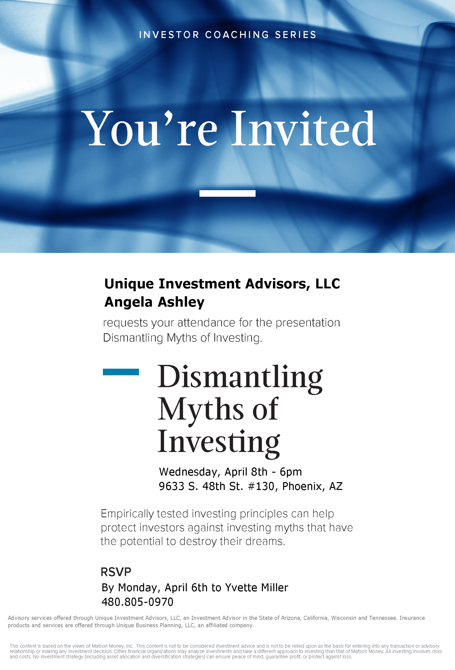 Unique Investment Advisors and Angela Ashley requests your attendance for the presentation: