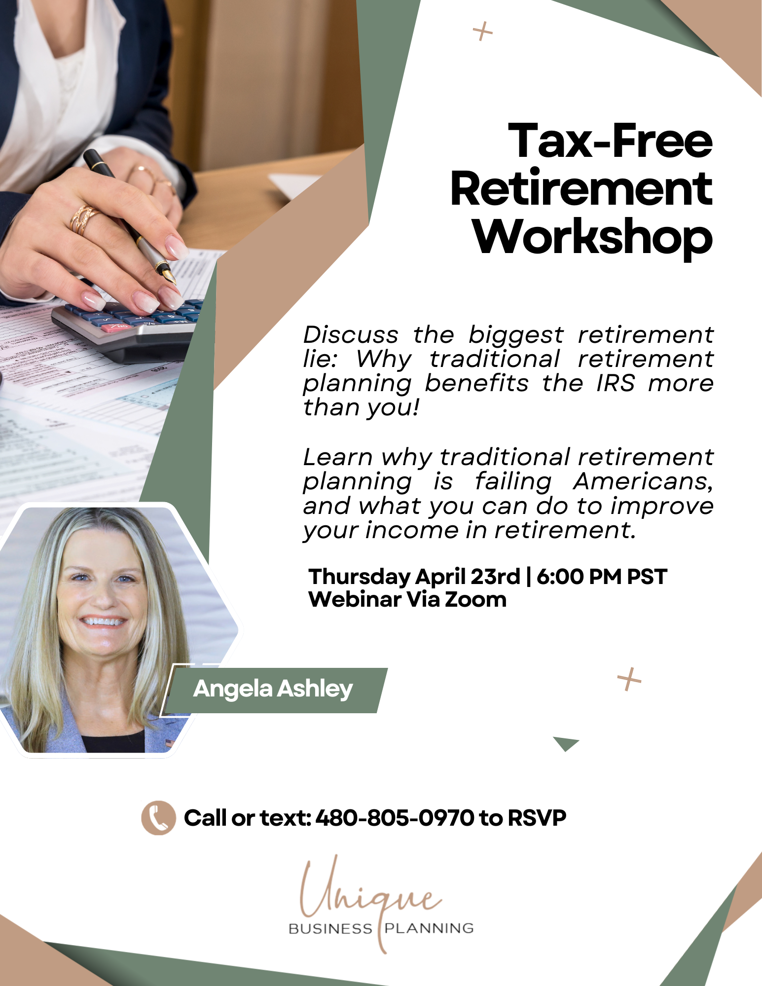 I wanted to personally invite you to our Tax-Free Retirement: Advanced Planning Strategies workshop Thursday, April 23rd, at 6:00PM. I’ll be hosting the workshop virtually via Zoom.